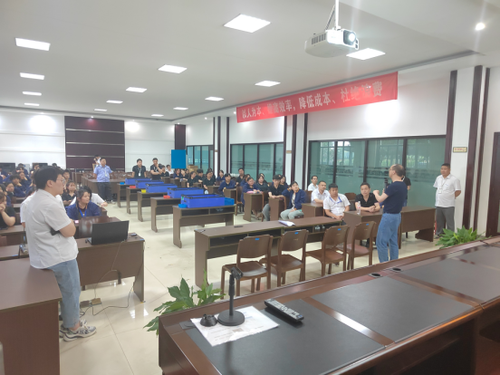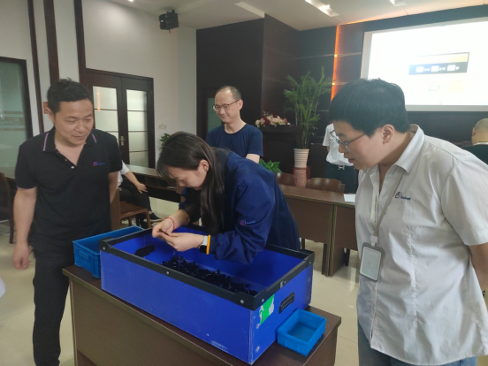 生產部門的主管們也積極參與到此次活動中,為活動增添了更多活力。會議初始,品質部金課長詳細地為大家講解了本次活動規則,5 人一小組的團隊競賽模式,瞬間點燃了大家的團隊協作熱情。